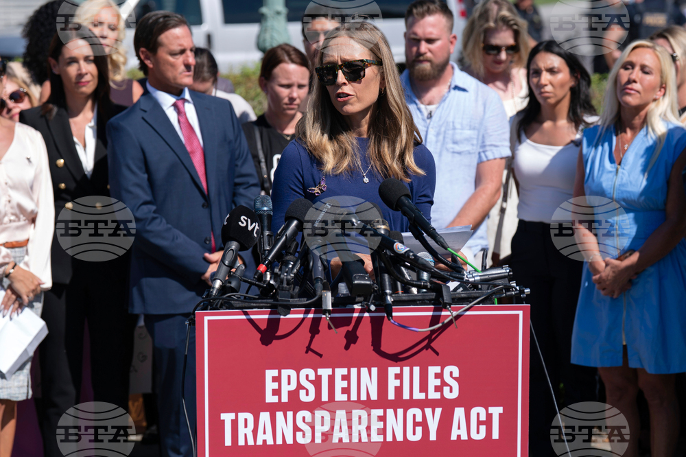 Anouska De Georgiou speaks during a news conference regarding the release of the Jeffrey Epstein files, on Capitol Hill, Wednesday, Sept. 3, 2025, in Washington. (AP Photo/Rod Lamkey, Jr.)