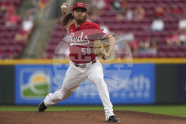 Cincinnati Reds' Scott Barlow delivers a pitch in the first inning of a baseball game against the Toronto Blue Jays, Tuesday, Sept. 2, 2025, in Cincinnati. (AP Photo/Kareem Elgazzar)