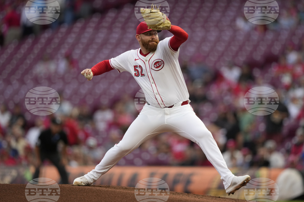 Cincinnati Reds pitcher Zack Littell throws during the first inning of a baseball game against the Toronto Blue Jays Wednesday, Sept. 3, 2025, in Cincinnati. (AP Photo/Carolyn Kaster)
