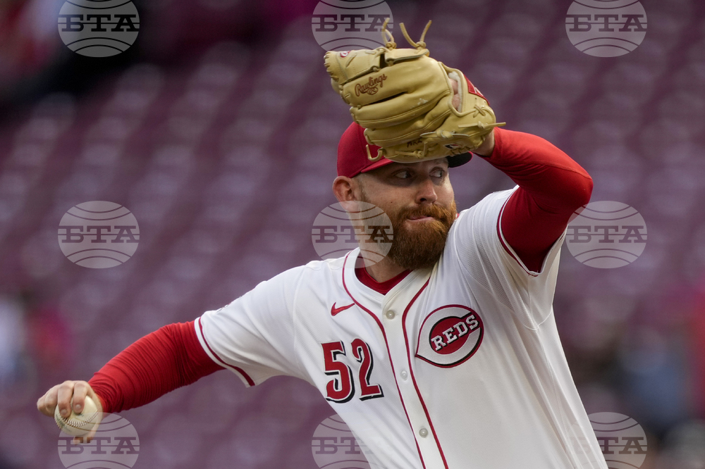 Cincinnati Reds' Brent Suter delivers a pitch in the second inning of a baseball game against the Toronto Blue Jays, Tuesday, Sept. 2, 2025, in Cincinnati. (AP Photo/Kareem Elgazzar)