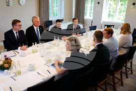 Denmark's Prime Minister Mette Frederiksen, Ukraine's President Volodymyr Zelensky, Estonia's Prime Minister Kristen Michal, Lithuania's President Gitanas Nauseda, Sweden's Prime Minister Ulf Kristersson, Iceland's Prime Minister Kristrun Frostadottir, Latvia's Prime Minister Evika Silina, and Finland's President Alexander Stubb attend a summit on Ukraine at Marienborg, Copenhagen, Denmark, Wednesday, Sept. 3, 2025. (Mads Claus Rasmussen/Ritzau Scanpix via AP)