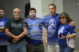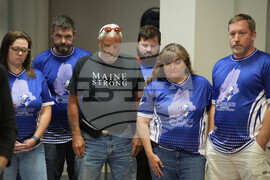 Victims and relatives of the October 2023 mass shooting attend a news conference, Wednesday, Sept. 3, 2025, in Lewiston, Maine. (AP Photo/Robert F. Bukaty)