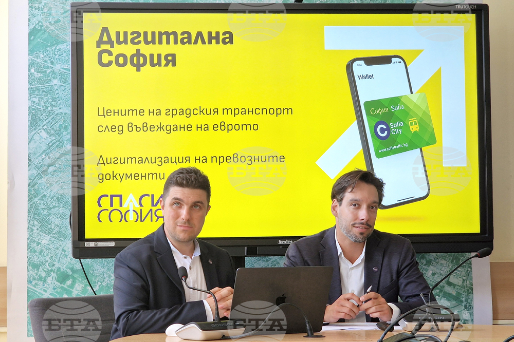 София (3 септември 2025) Брифинг на групата на „Спаси София“ в Столична община във връзка с цените на билетите в градския транспорт след приемането на еврото. На снимката: общинските съветници Гергин Борисов и Борис Бонев (вдясно).