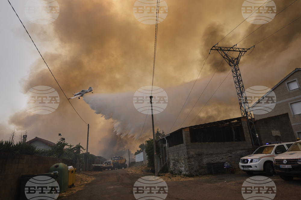 FILE - Firefighters battle a wildfire in Veiga das Meas, northwestern Spain, Saturday, Aug. 16, 2025. (AP Photo/Lalo R. Villar, File)