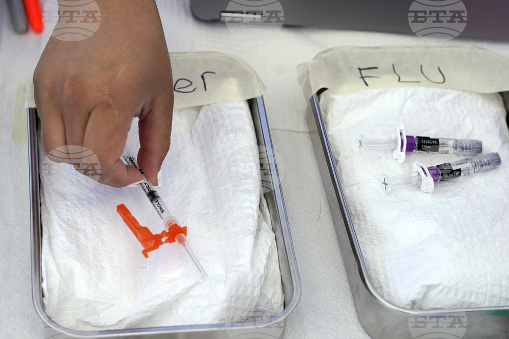FILE - A COVID vaccine, left, is readied as a flu vaccine sits nearby at the L.A. Care and Blue Shield of California Promise Health Plans' Community Resource Center where they were offering members and the public free flu and COVID-19 vaccines, Oct. 28, 2022, in Lynwood, Calif. (AP Photo/Mark J. Terrill, file)
