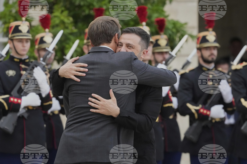 France's President Emmanuel Macron, right, embraces Ukraine's President Volodymyr Zelenskyy at the end of a press conference following a summit on Ukraine at the Elysee Palace, in Paris, France, Thursday, Sept. 4, 2025. (Ludovic Marin, Pool Photo via AP)