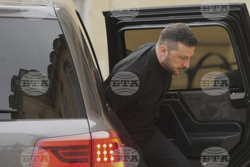 Ukraine's President Volodymyr Zelenskyy arrives for a meeting with France's President Emmanuel Macron, at the Elysee Palace, in Paris, France, Wednesday, Sept. 3, 2025. (AP Photo/Michel Euler)