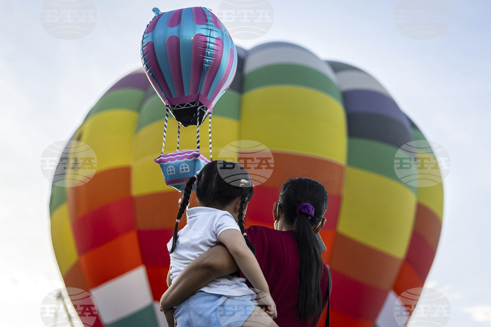 Visitors hold a balloon during the International Hot Air Balloon Festival in Hong Kong, Thursday, Sep. 4, 2025. (AP Photo/Chan Long Hei)