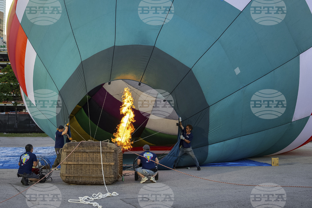 Workers ignite a hot air balloon during the International Hot Air Balloon Festival in Hong Kong, Thursday, Sep. 4, 2025. (AP Photo/Chan Long Hei)