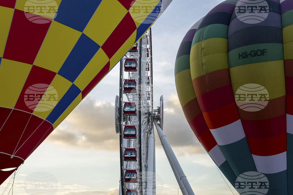 Hot air balloons are tethered to the ground during the International Hot Air Balloon Festival in Hong Kong, Thursday, Sep. 4, 2025. (AP Photo/Chan Long Hei)