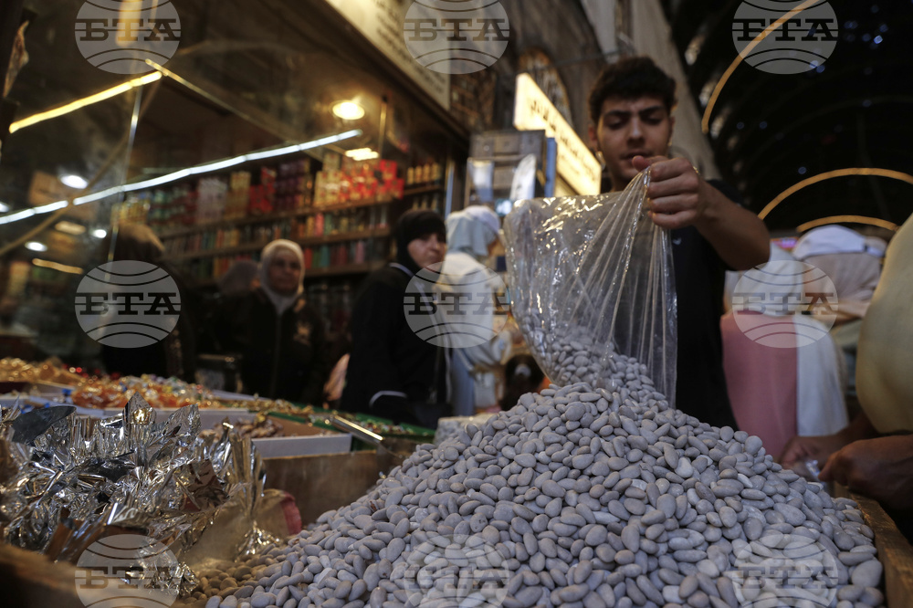 A Syrian vendor arranges candy to sell on the eve of the Prophet Muhammad's birthday in the Old City of Damascus, Syria, Thursday, Sept. 4, 2025. (AP Photo/Omar Sanadiki)