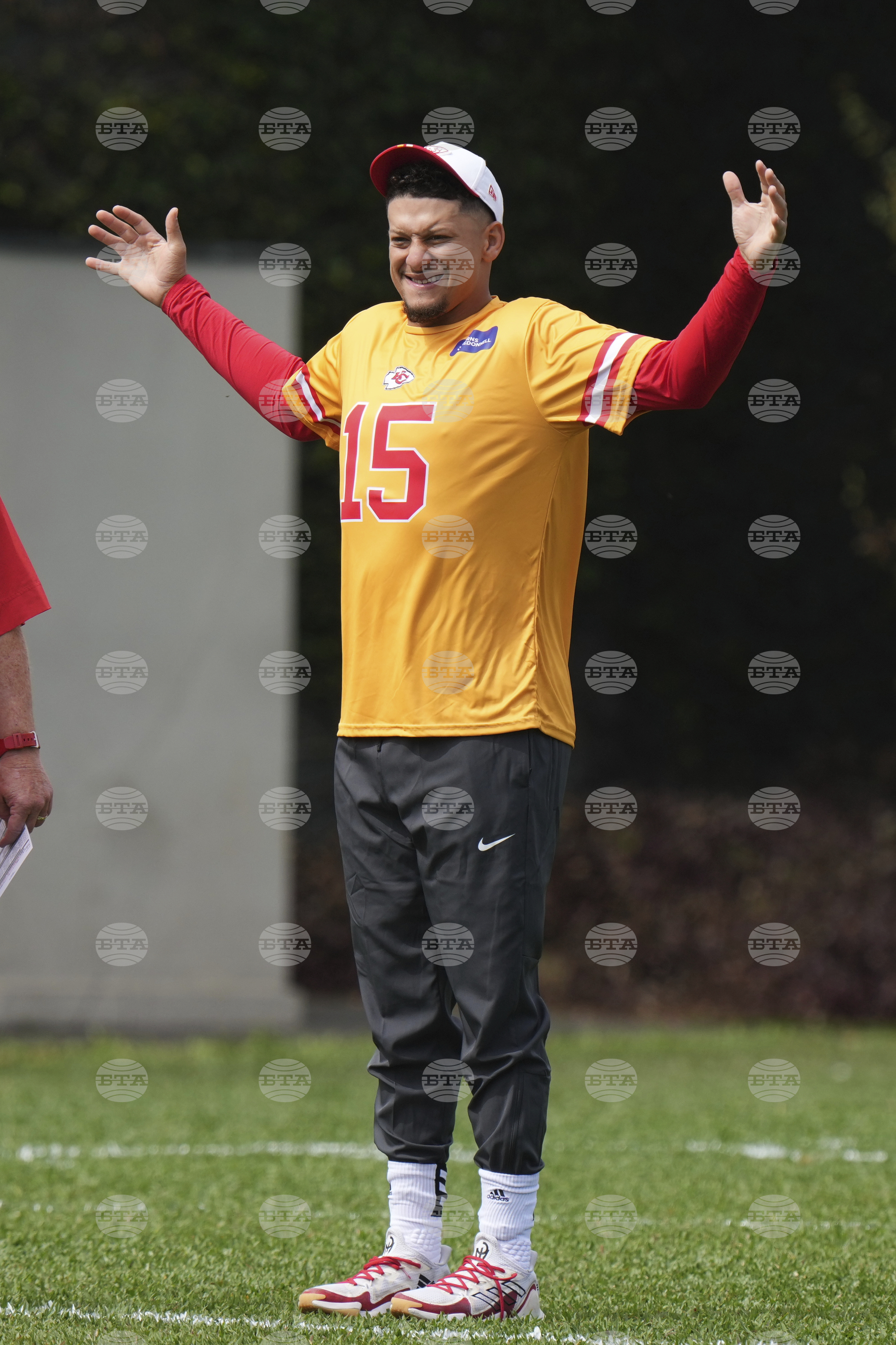 Kansas City Chiefs quarterback Patrick Mahomes stretches during a training session prior to a NFL football game against Los Angeles Chargers in Sao Paulo, Brazil, Thursday, Sept. 4, 2025. (AP Photo/Fernando Llano)
