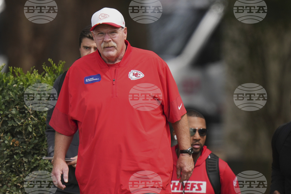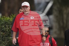 Kansas City Chiefs head coach Andy Reid arrives for a training session prior to a NFL football game against Los Angeles Chargers in Sao Paulo, Brazil, Thursday, Sept. 4, 2025. (AP Photo/Fernando Llano)