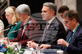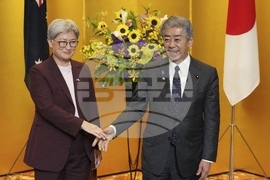 Australian Foreign Minister Penny Wong, center left, and Defense Minister Richard Marles, center right, meet with Japanese Defense Minister Gen Nakatani and Foreign Minister Takeshi Iwaya, not in picture, in Tokyo Friday, Sept. 5, 2025. (Rodrigo Reyes Marin/Pool Photo via AP)