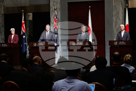 From left, Australian Foreign Minister Penny Wong, Australian Defense Minister Richard Marles, Japanese Foreign Minister Takeshi Iwaya and Japanese Defense Minister Gen Nakatani attend a joint press conference in Tokyo Friday, Sept. 5, 2025. (Rodrigo Reyes Marin/Pool Photo via AP)