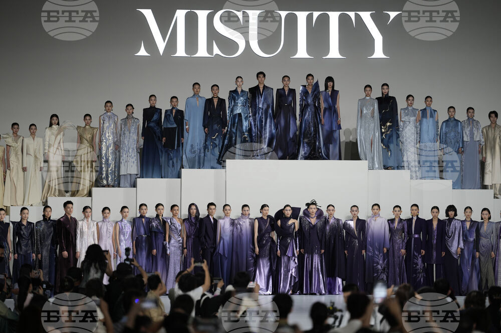 Models stand together at the end of the Misuity SS2026 China Fashion Week opening show held on the outskirts of Beijing, China, Friday, Sept. 5, 2025. (AP Photo/Ng Han Guan)