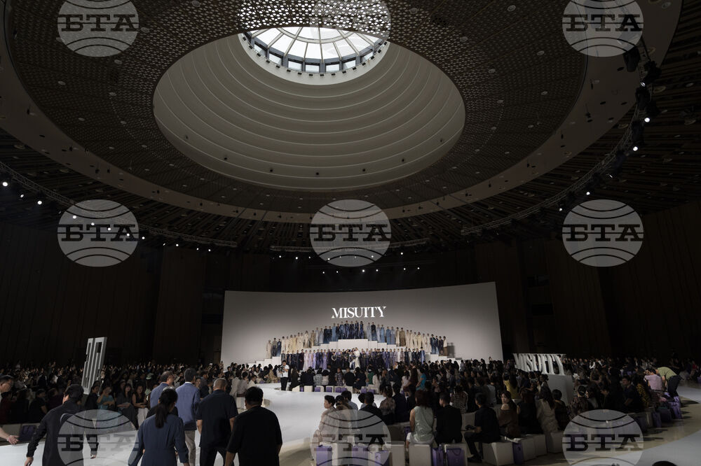 Models wear the latest fashion during the Misuity SS2026 China Fashion Week opening show held on the outskirts of Beijing, China, Friday, Sept. 5, 2025. (AP Photo/Ng Han Guan)