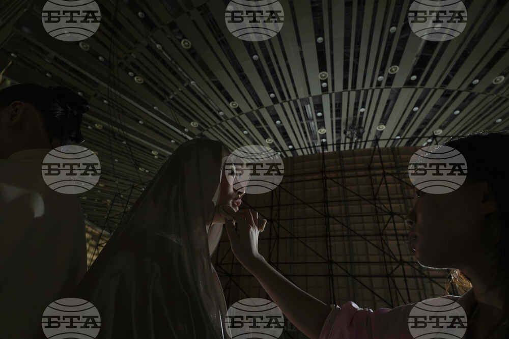Models prepare for the Misuity SS2026 China Fashion Week opening show held on the outskirts of Beijing, China, Friday, Sept. 5, 2025. (AP Photo/Ng Han Guan)