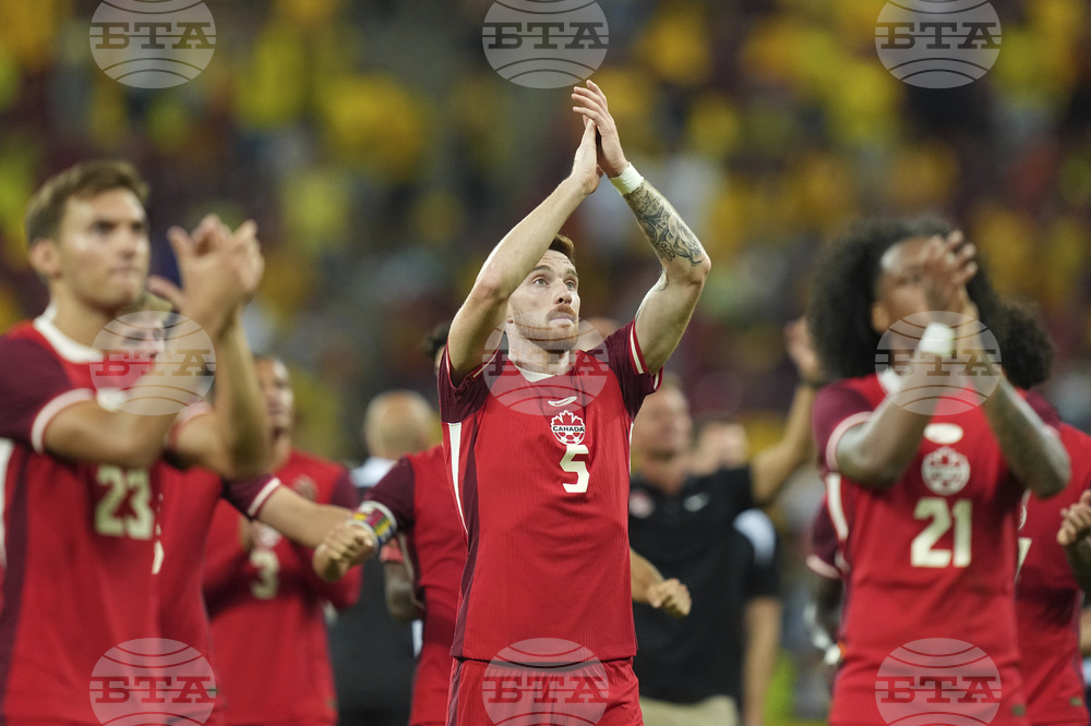 Canada's Joel Waterman and team mates applaud fans after an international friendly soccer match between Romania and Canada at the National Arena stadium in Bucharest, Romania, Friday, Sept. 5, 2025. (AP Photo/Andreea Alexandru)
