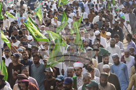 Muslims attend a procession as they mark Prophet Muhammad's birthday, known as Mawlid, in Karachi, Pakistan, Saturday, Sept. 6, 2025. (AP Photo/Fareed Khan)
