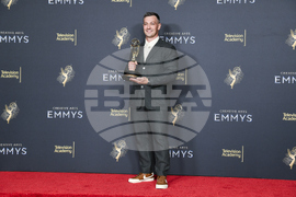 Adam Newport-Berra poses in the press room with the award for outstanding cinematography for a series (half-hour) for "The Studio" during night one of the Creative Arts Emmy Awards on Saturday, Sept. 6, 2024, in Los Angeles. (Photo by Richard Shotwell/Invision/AP)