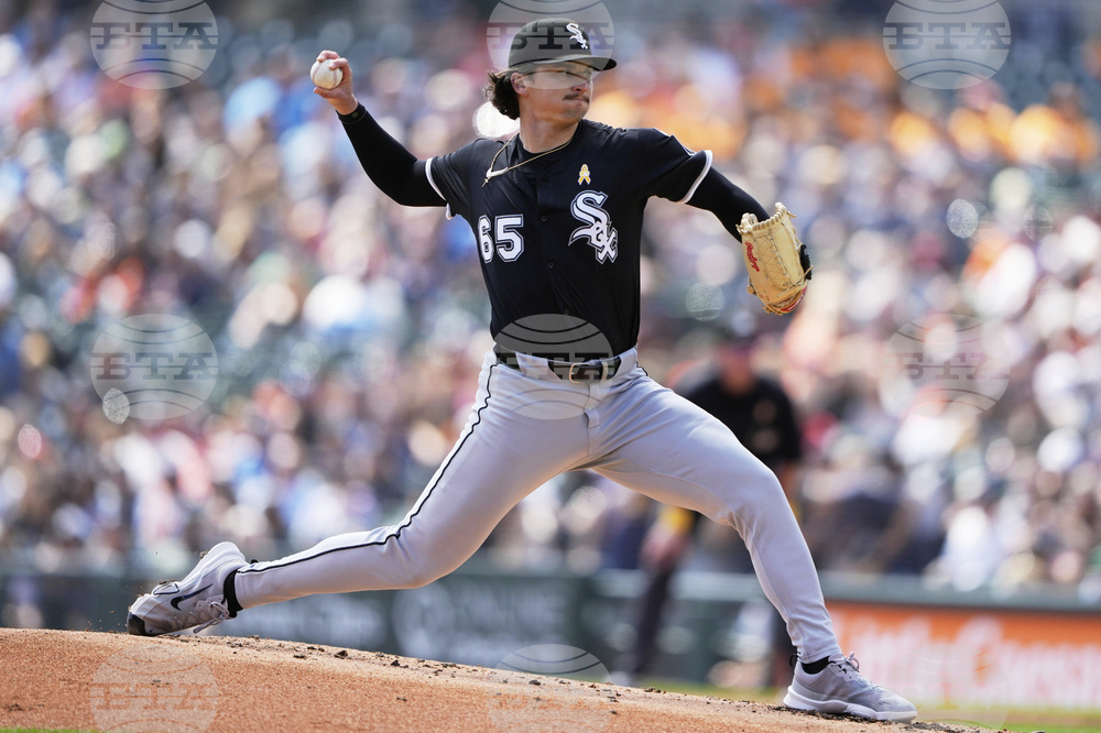 Chicago White Sox starting pitcher Davis Martin throws during the first inning of a baseball game against the Detroit Tigers, Sunday, Sept. 7, 2025, in Detroit. (AP Photo/Ryan Sun)