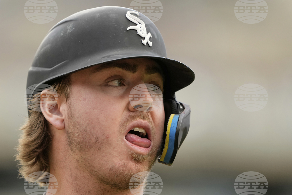 Chicago White Sox designated hitter Andrew Benintendi reacts while walking back to the dugout during the eighth inning of a baseball game against the Detroit Tigers, Sunday, Sept. 7, 2025, in Detroit. (AP Photo/Ryan Sun)