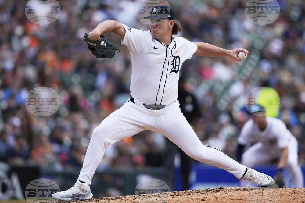 Detroit Tigers relief pitcher Tyler Holton throws during the fourth inning of a baseball game against the Chicago White Sox, Sunday, Sept. 7, 2025, in Detroit. (AP Photo/Ryan Sun)