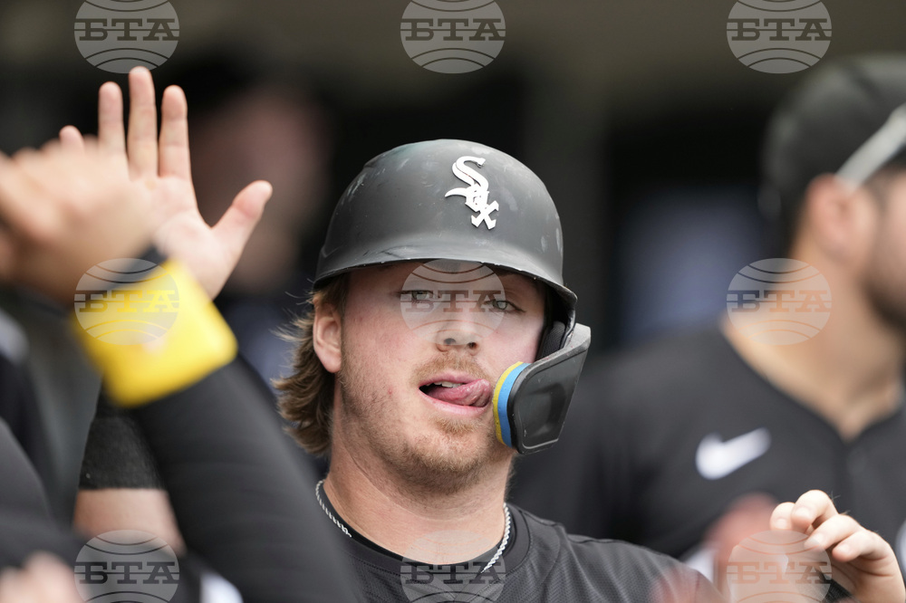 Chicago White Sox's Chase Meidroth celebrates in the dugout after scoring the go-ahead run off a single hit by Lenyn Sosa during the eighth inning of a baseball game against the Detroit Tigers, Sunday, Sept. 7, 2025, in Detroit. (AP Photo/Ryan Sun)