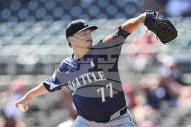 Seattle Mariners pitcher Luke Jackson (77) delivers in the ninth inning of a baseball game against the Atlanta Braves, Sunday, Sept. 7, 2025, in Atlanta. (AP Photo/Colin Hubbard)