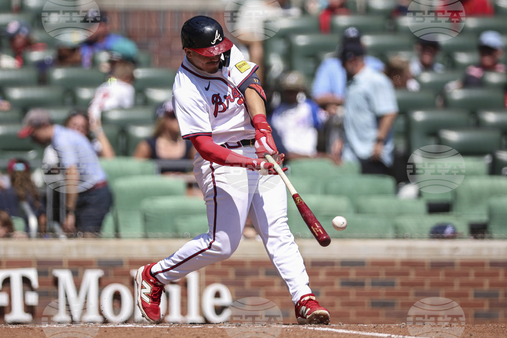 Atlanta Braves' Nacho Alvarez Jr. hits a single in the eighth inning of a baseball game against the Seattle Mariners, Sunday, Sept. 7, 2025, in Atlanta. (AP Photo/Colin Hubbard)