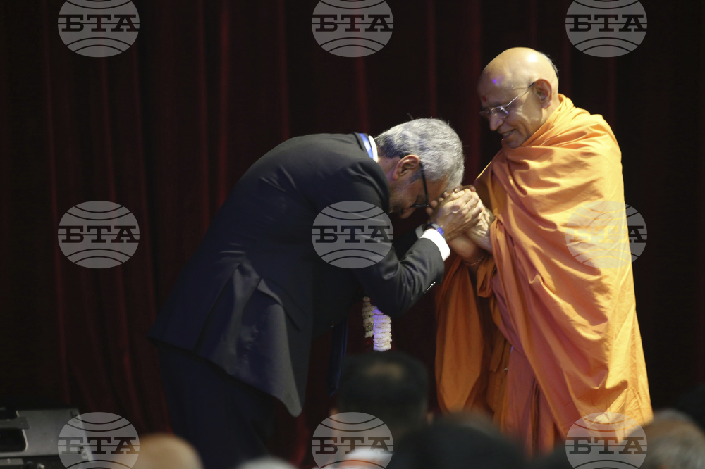 IMAGE DISTRIBUTED FOR THE APPEAL OF CONSCIENCE FOUNDATION - Worshippers show their support for Stand Up Sunday at the BAPS Swaminarayan Sanstha Hindu Temple on Saturday, September 6, 2025 in Robbinsville, NJ. Organized by the Appeal of Conscience Foundation and the Foundation to Combat Antisemitism, Stand Up Sunday brought together over one million people of faith to speak out against the rise in antisemitism and all faith-based hate. Stand Up Sunday worship services were held in Houses of Worship across the United States. (Meredith Edlow/AP Content Services for The Appeal of Conscience Foundation)