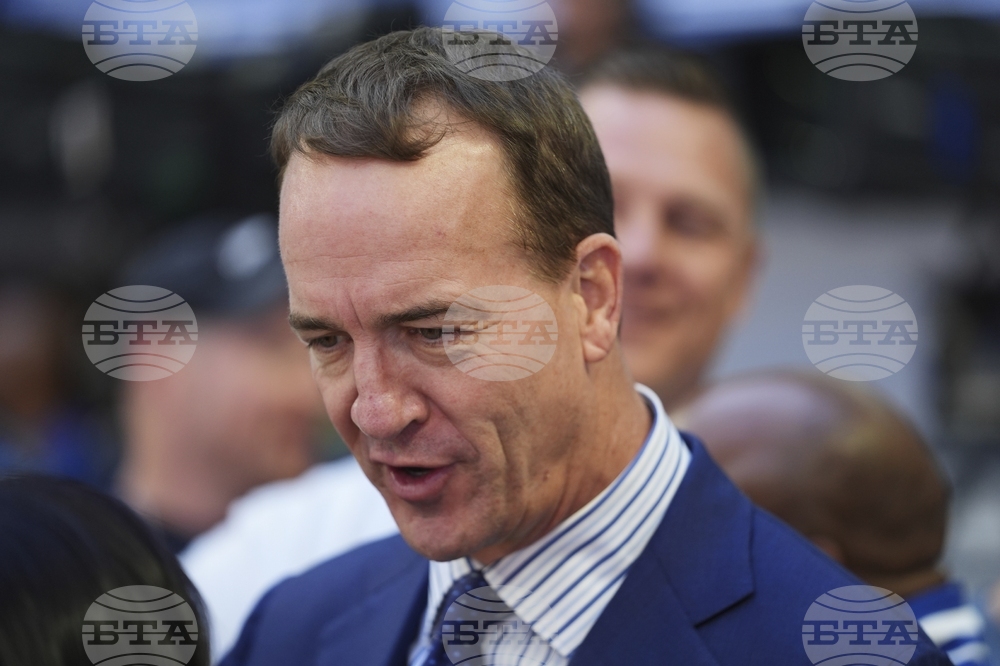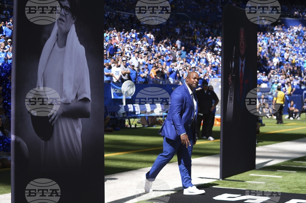Former Indianapolis Colts' Peyton Manning appears before an NFL football game between the Colts and the Miami Dolphins on Sunday, Sept. 7, 2025, in Indianapolis. (AP Photo/Darron Cummings)