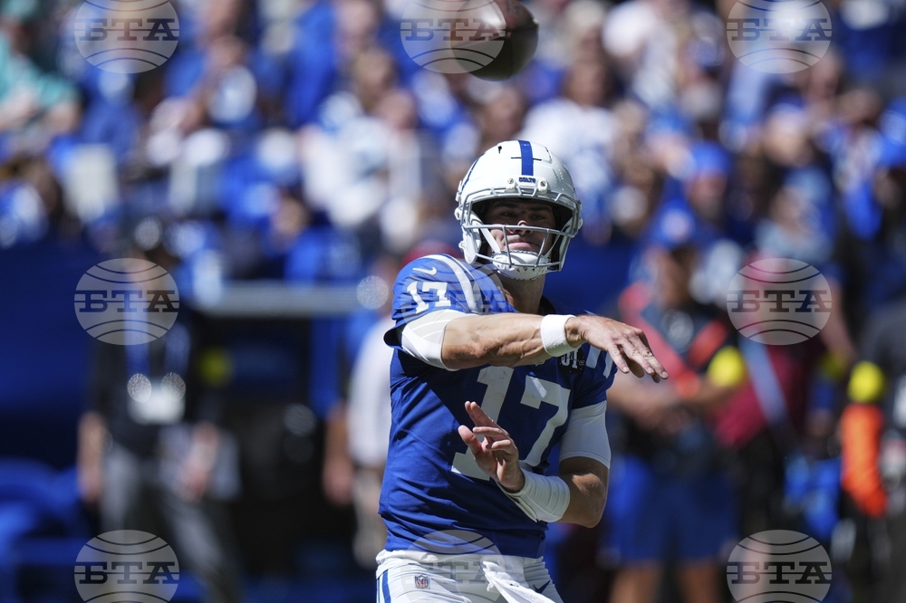 Indianapolis Colts quarterback Daniel Jones throws during the first half of an NFL football game against the Miami Dolphins on Sunday, Sept. 7, 2025, in Indianapolis. (AP Photo/AJ Mast)