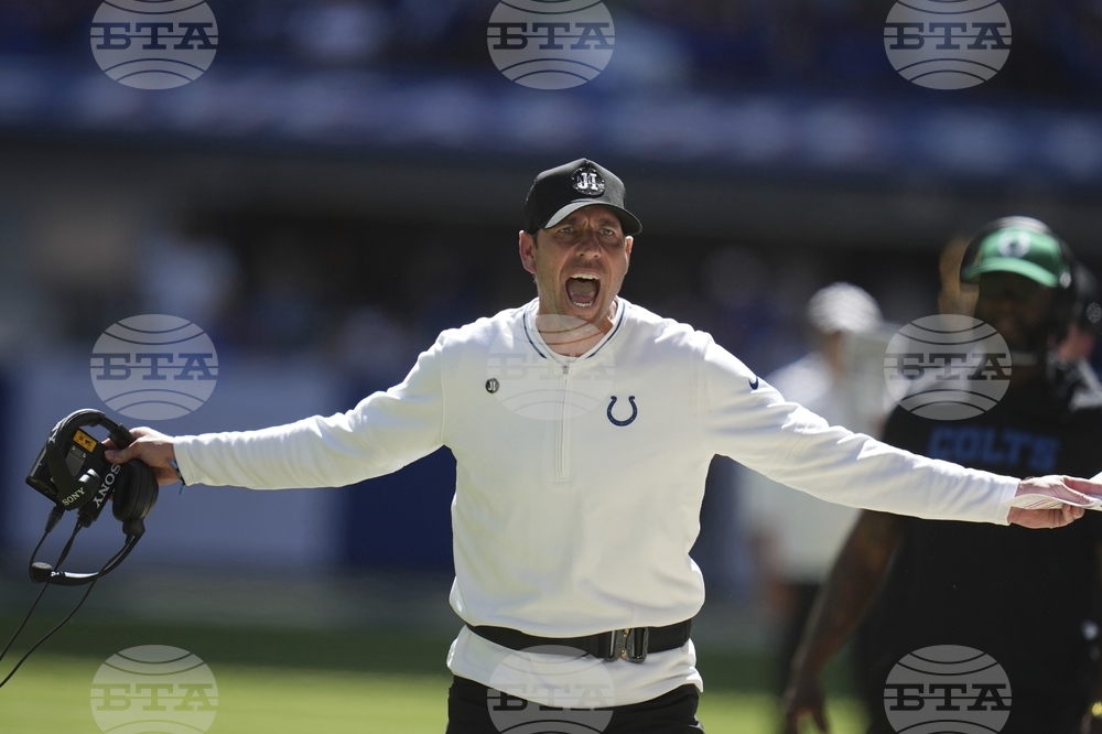 Indianapolis Colts head coach Shane Steichen watches action during the first half of an NFL football game against the Miami Dolphins on Sunday, Sept. 7, 2025, in Indianapolis. (AP Photo/Darron Cummings)