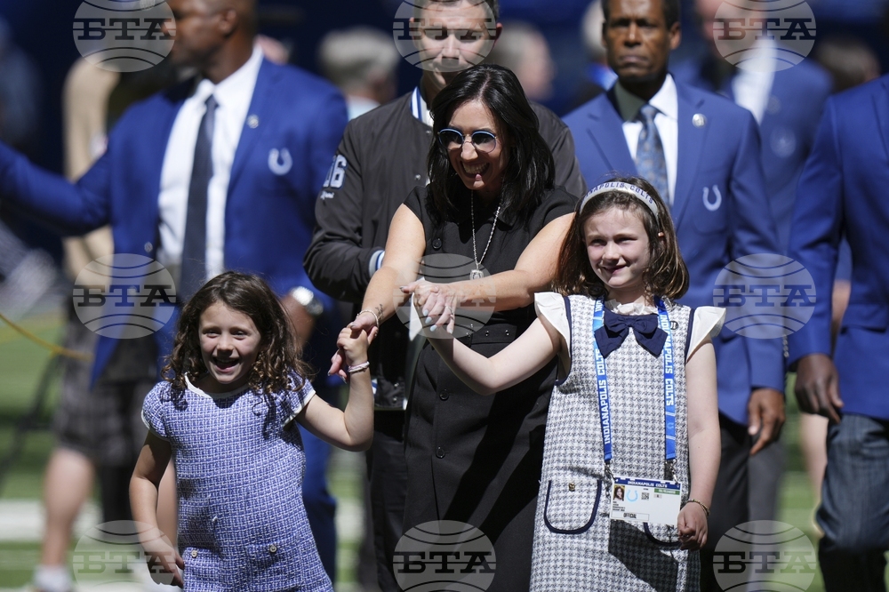 Indianapolis Colts co-owner Kalen Jackson walks on the field at halftime of an NFL football game against the Miami Dolphins on Sunday, Sept. 7, 2025, in Indianapolis. (AP Photo/AJ Mast)