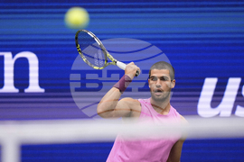 Carlos Alcaraz, of Spain, returns a shot against to Jannik Sinner, of Italy, during the men's singles final of the U.S. Open tennis championships, Sunday, Sept. 7, 2025, in New York. (AP Photo/Seth Wenig)