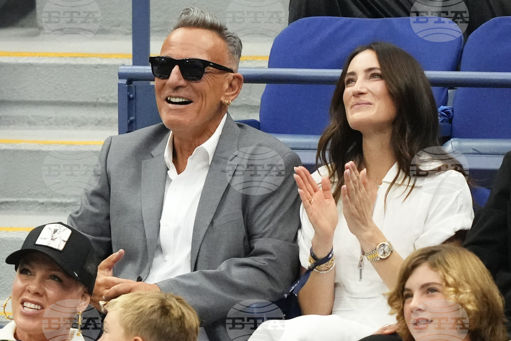 Bruce Springsteen watches play between Jannik Sinner, of Italy, and Carlos Alcaraz, of Spain, during the men's singles final of the U.S. Open tennis championships, Sunday, Sept. 7, 2025, in New York. (AP Photo/Yuki Iwamura)