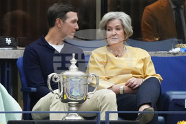 Jared Kushner left, and Susie Wiles, White House Chief of Staff, talk while watching play between Carlos Alcaraz, of Spain, and Jannik Sinner, of Italy, during the men's singles final of the U.S. Open tennis championships, Sunday, Sept. 7, 2025, in New York. (AP Photo/Yuki Iwamura)