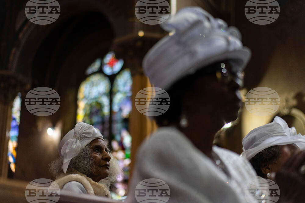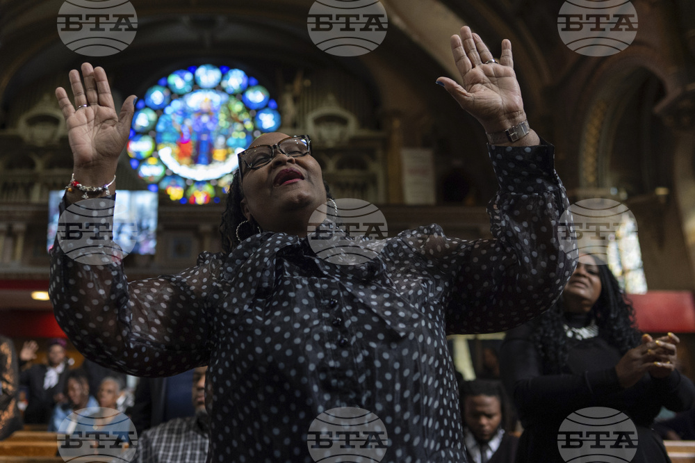 Evette Ervin, right, worships with the congregation during a service at New Mount Pilgrim Missionary Baptist Church, Sunday, Sept. 7, 2025, in Chicago. (AP Photo/Carolyn Kaster)