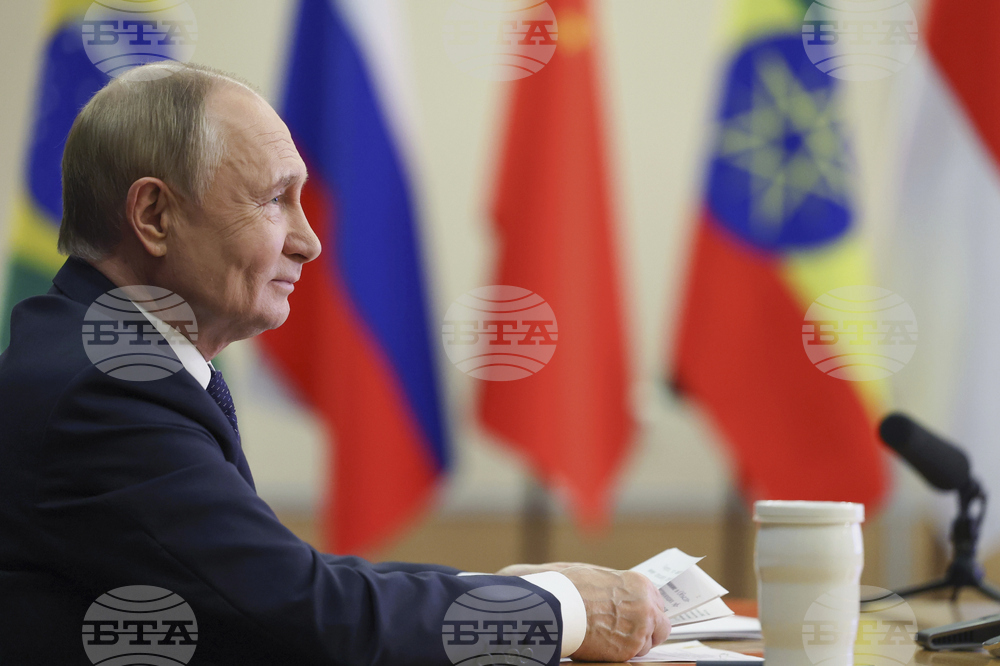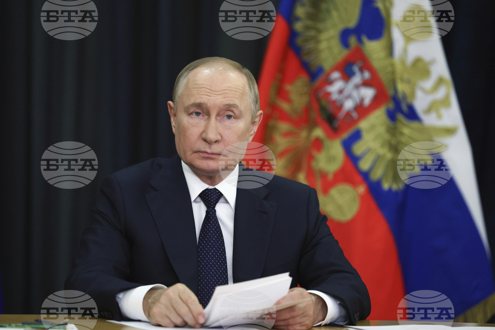 CORRECTS CITY TO SOCHI - Russian President Vladimir Putin takes part, via videoconference at the Novo-Ogaryovo residence outside Sochi, Russia, Monday, Sept. 8, 2025, in the main plenary session of the 17th BRICS Summit in Rio de Janeiro under Brazilian Chairmanship. (Vyacheslav Prokofyev, Sputnik, Kremlin Pool Photo via AP)