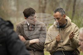 This image released by Mubi shows Josh O'Connor, left, and director Oliver Hermanus on the set of "The History of Sound." (Mubi via AP)