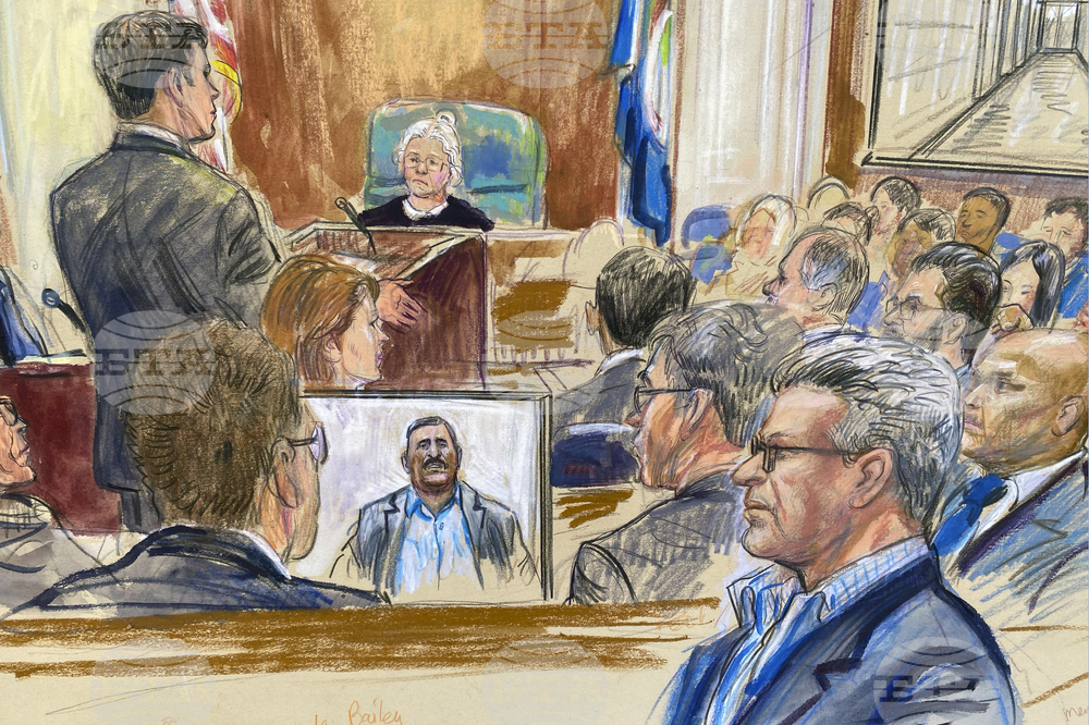 FILE - This artist sketch depicts Salah Al-Ejaili, foreground with glasses, a former Al-Jazeera journalist, before the U.S. District Court in Alexandria, Va., April 16, 2024. (Dana Verkouteren via AP, File)