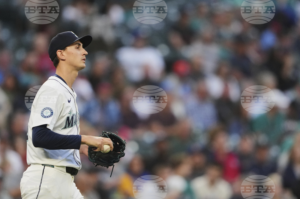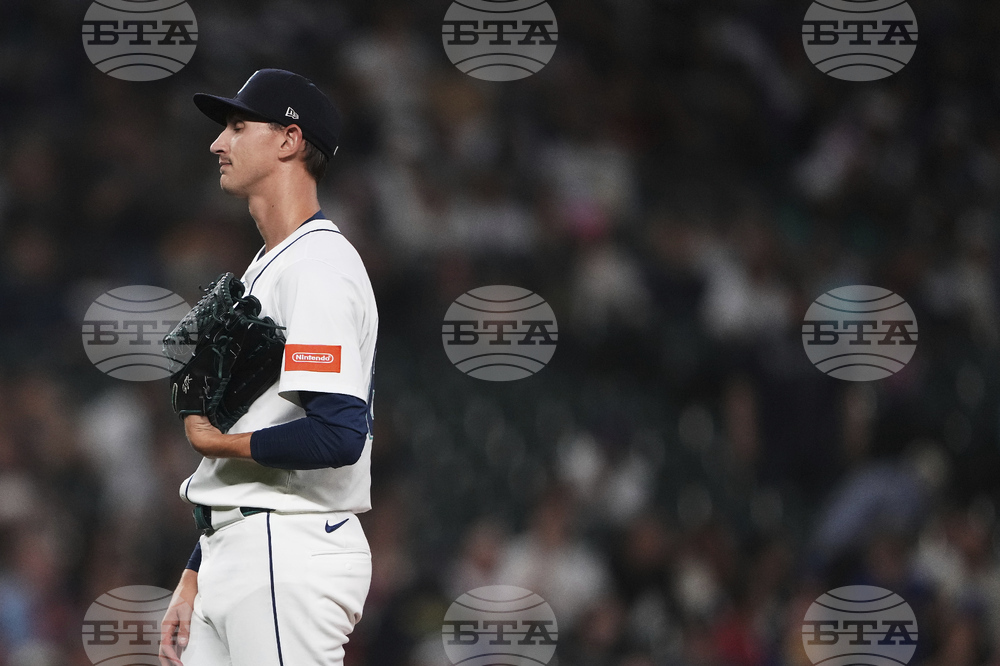Seattle Mariners starting pitcher George Kirby reacts after an RBI single from St. Louis Cardinals' Jose Fermin during the fourth inning of a baseball game Tuesday, Sept. 9, 2025, in Seattle. (AP Photo/Lindsey Wasson)
