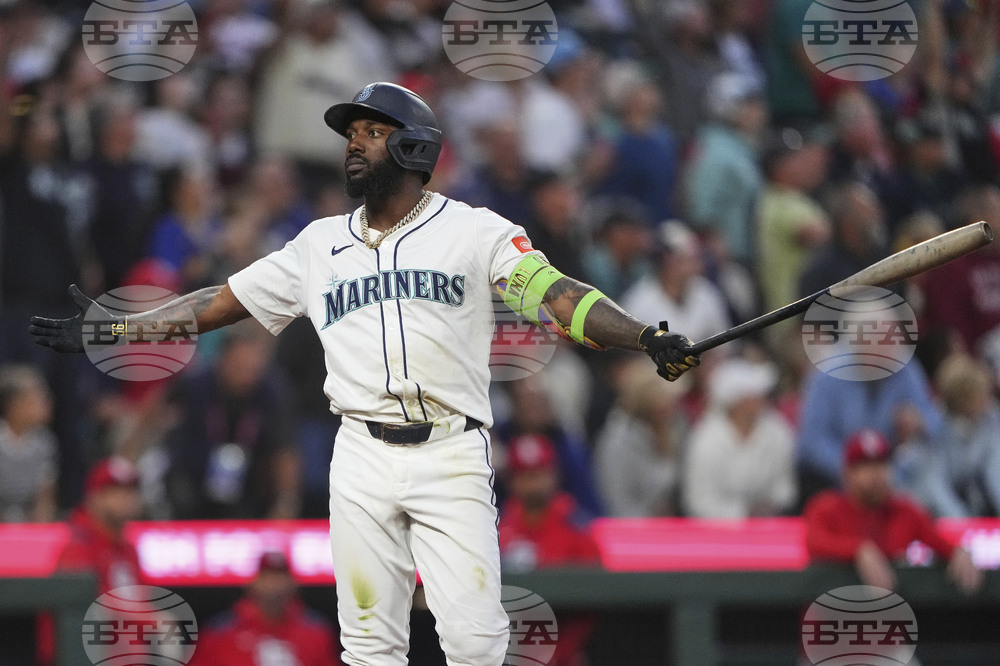 Seattle Mariners right fielder Victor Robles walks back to the dugout after the second inning of a baseball game against the St. Louis Cardinals, Tuesday, Sept. 9, 2025, in Seattle. (AP Photo/Lindsey Wasson)