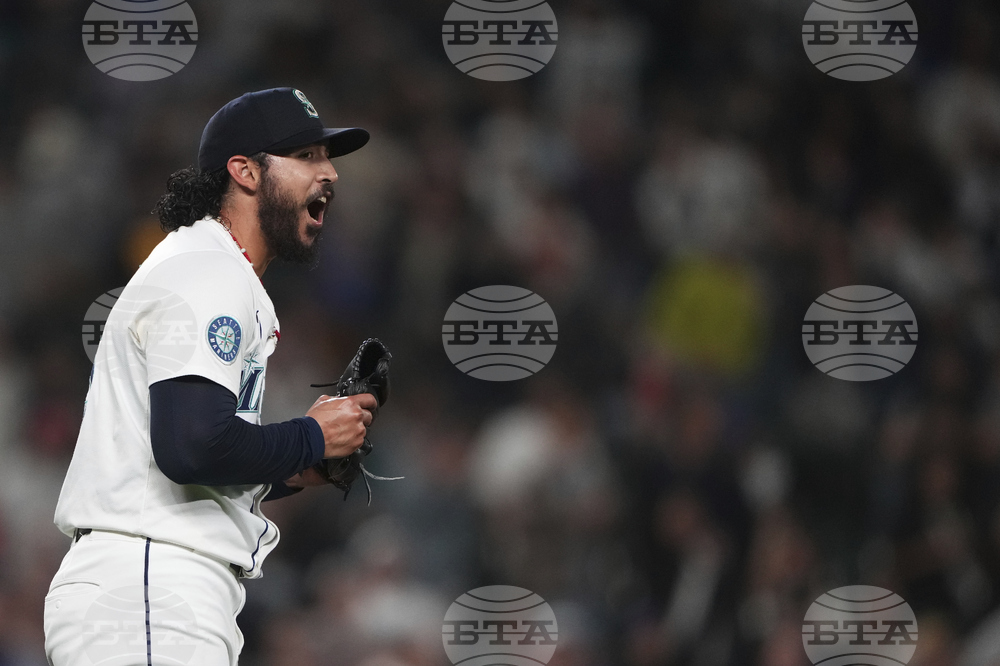 Seattle Mariners relief pitcher Andrés Muñoz reacts after earning the save for a win against the St. Louis Cardinals in a baseball game Tuesday, Sept. 9, 2025, in Seattle. (AP Photo/Lindsey Wasson)