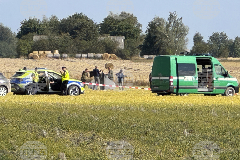 Police and Military Police secure parts of a damaged UAV shot down by Polish authorities at a site in Wohyn, Poland, Wednesday, Sept. 10, 2025.(AP Photo)