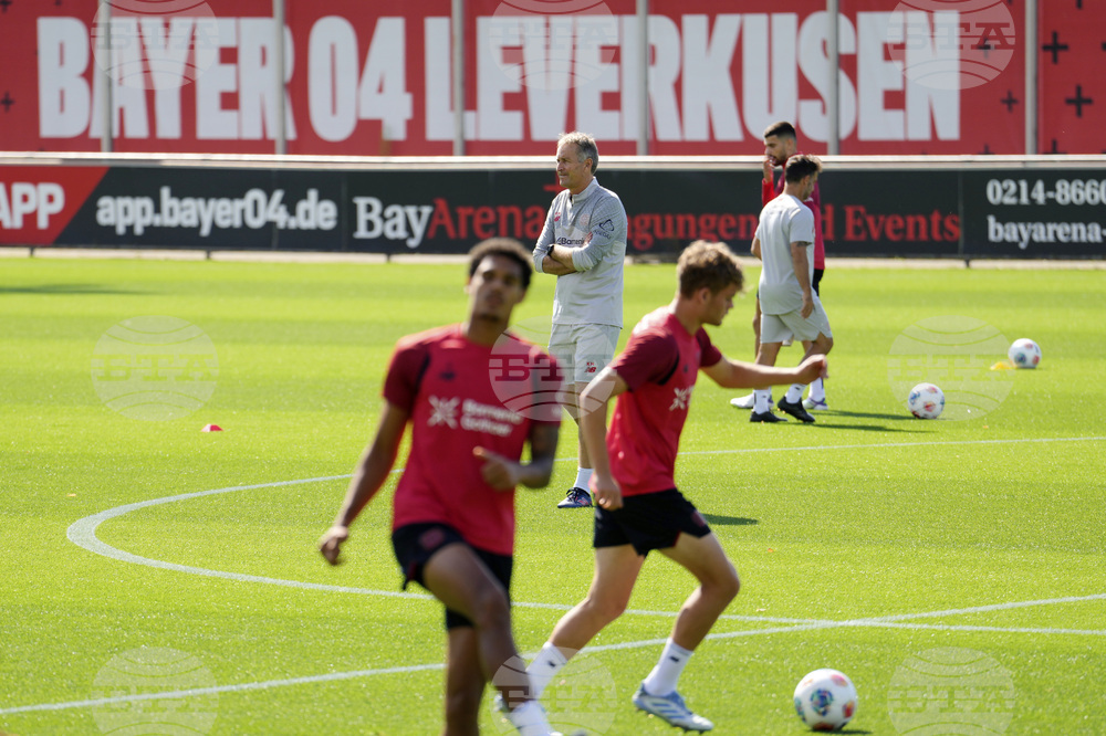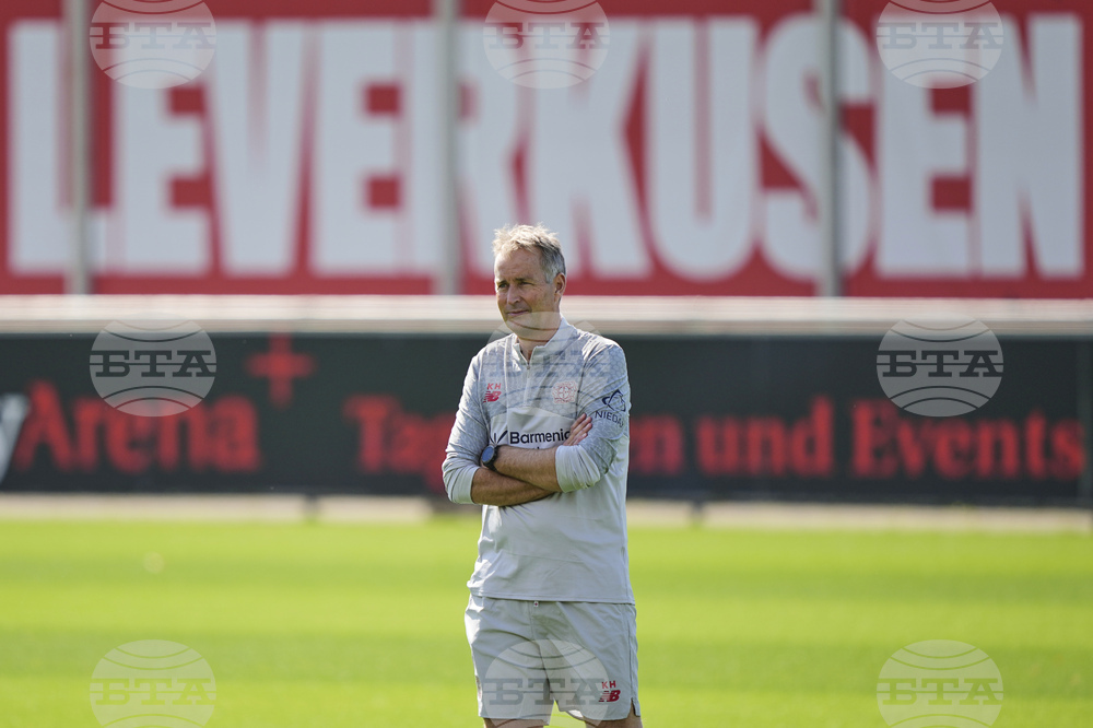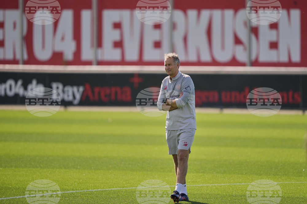 New head coach of Bundesliga soccer club Bayer Leverkusen Kasper Hjulmand from Denmark attends his first training session in Leverkusen, Germany, Wednesday, Sept. 10, 2025. (AP Photo/Martin Meissner)
