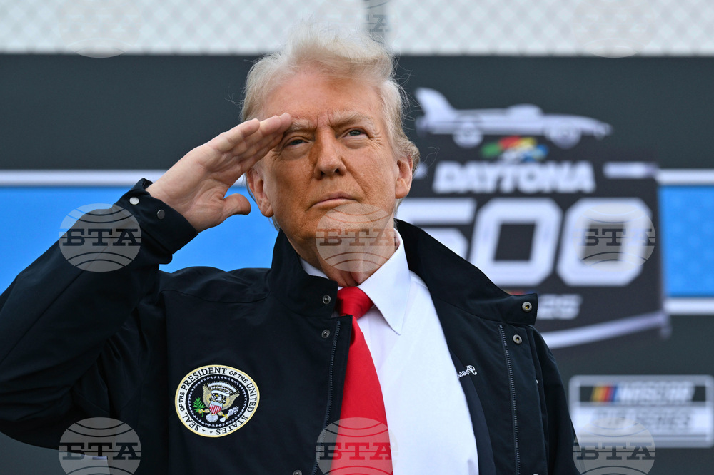 FILE - President Donald Trump salutes as he attends the NASCAR Daytona 500 auto race at Daytona International Speedway, Feb. 16, 2025, in Daytona Beach, Fla. (Pool via AP, File)