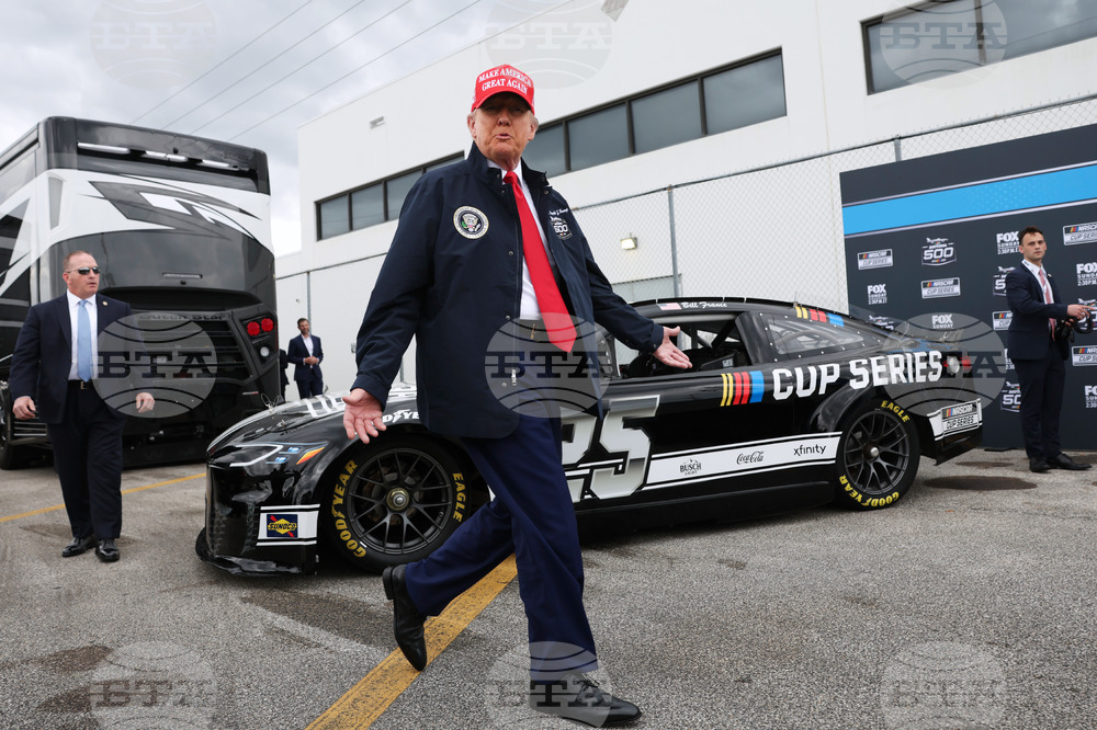 FILE - President Donald Trump attends the NASCAR Daytona 500 auto race at Daytona International Speedway, Feb. 16, 2025, in Daytona Beach, Fla. (Pool via AP, File)